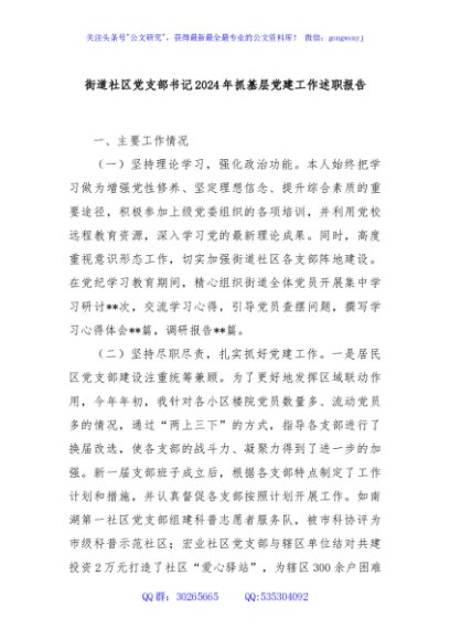 / 街道社区党支部书记2024年抓基层党建工作述职报告