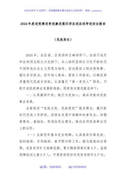 / 2024年度述党建述责述廉述意识形态述法述学述安全报告(民政局长)