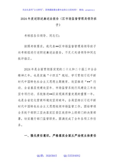 / 2024年度述职述廉述法报告(区市场监督管理局领导班子)