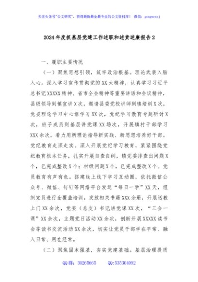 / 2024年度抓基层党建工作述职和述责述廉报告2