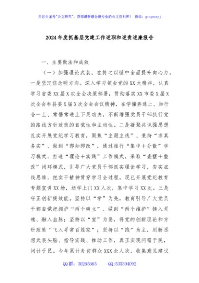 / 2024年度抓基层党建工作述职和述责述廉报告