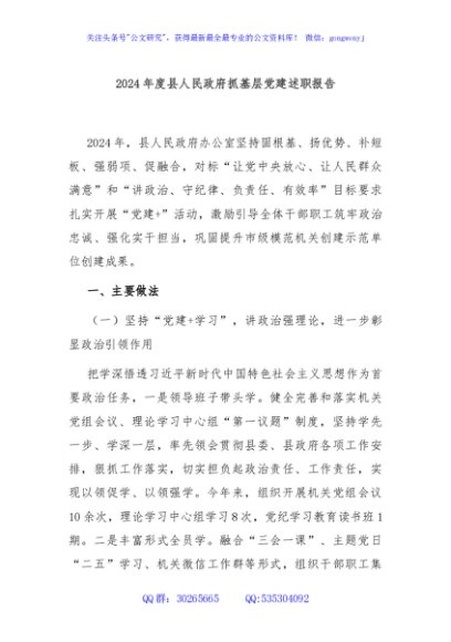 / 2024年度县人民政府抓基层党建述职报告