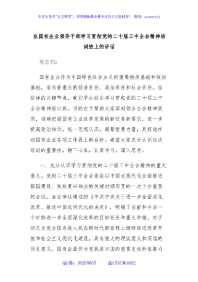 / 在国有企业领导干部学习贯彻党的二十届三中全会精神培训班上的讲话