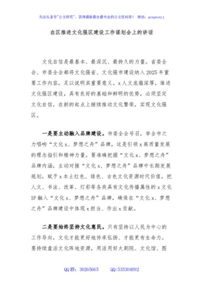 / 在区推进文化强区建设工作谋划会上的讲话