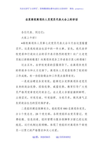 / 在某高校离退休人员党员代表大会上的讲话