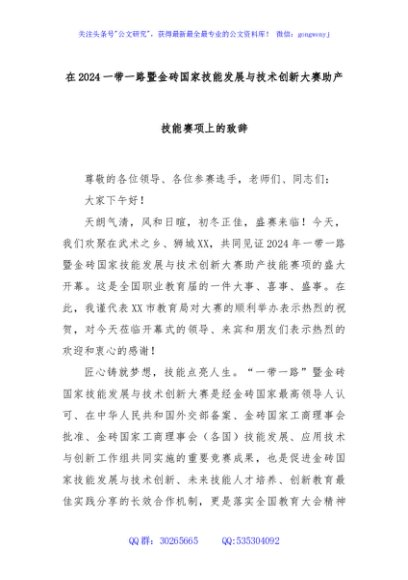 / 在2024一带一路暨金砖国家技能发展与技术创新大赛助产技能赛项上的致辞