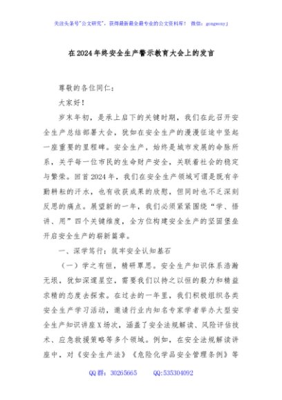 / 在2024年终安全生产警示教育大会上的发言