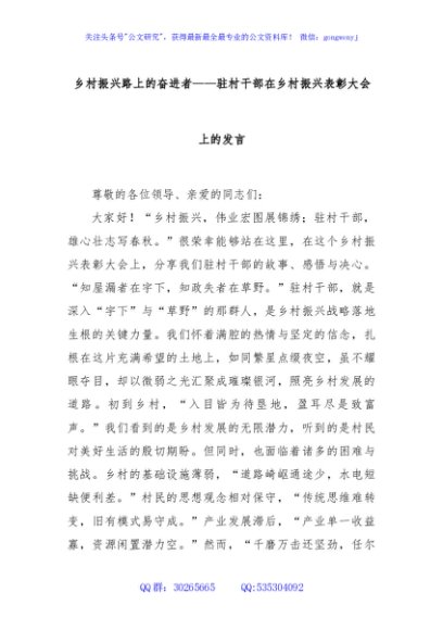 / 乡村振兴路上的奋进者——驻村干部在乡村振兴表彰大会上的发言