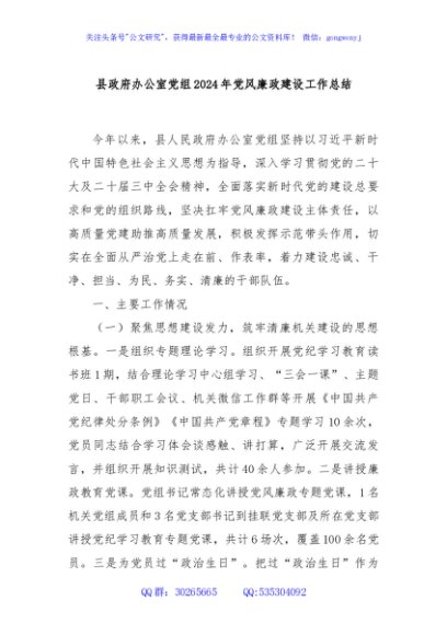 / 县政府办公室党组2024年党风廉政建设工作总结