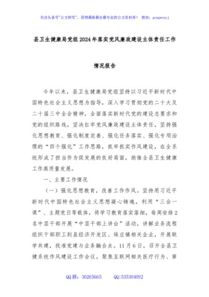 / 县卫生健康局党组2024年落实党风廉政建设主体责任工作情况报告