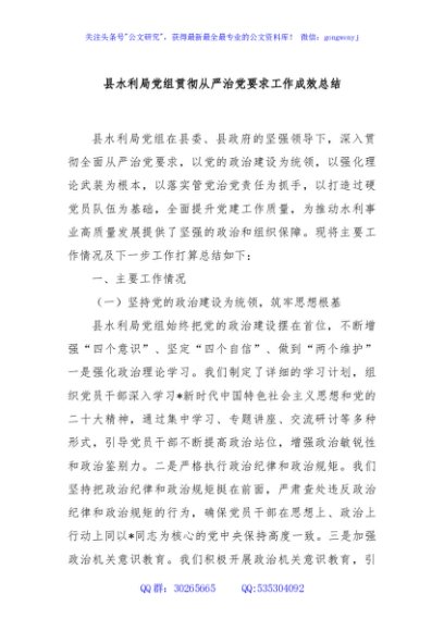 / 县水利局党组贯彻从严治党要求工作成效总结