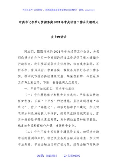 / 市委书记在学习贯彻落实2024年中央经济工作会议精神大会上的讲话