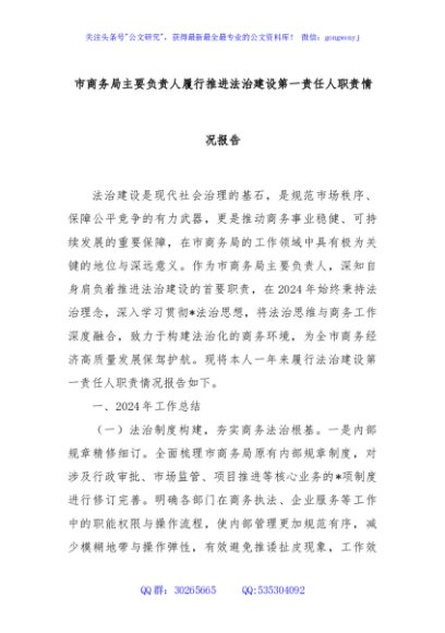 市商务局主要负责人履行推进法治建设第一责任人职责情况报告