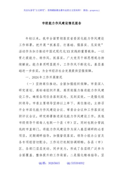 / 市级能力作风建设情况报告