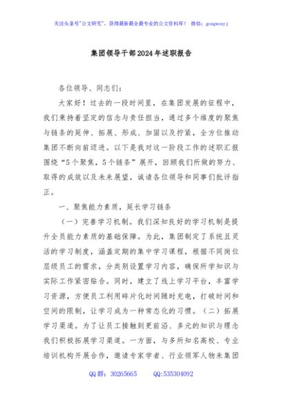 / 集团领导干部2024年述职报告