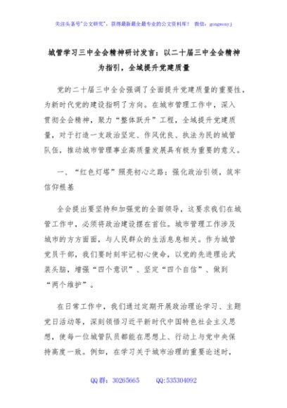 / 城管学习三中全会精神研讨发言:以二十届三中全会精神为指引,全域提升党建质量