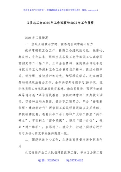/ X县总工会 2024 年工作回顾和 2025 年工作展望