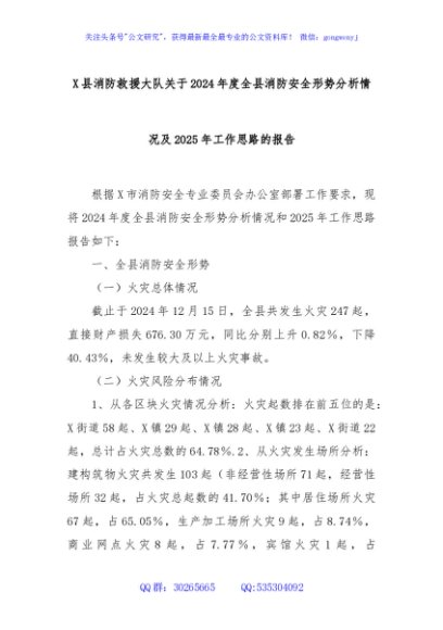 / X县消防救援大队关于2024年度全县消防安全形势分析情况及2025年工作思路的报告