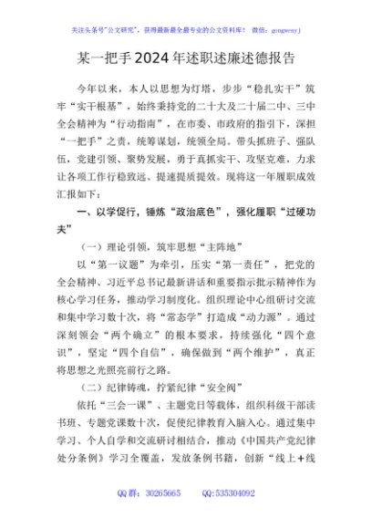 / 某一把手2024年述职述廉述德报告
