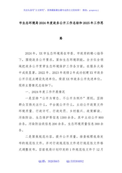/ 市生态环境局2024年度政务公开工作总结和2025年工作思路