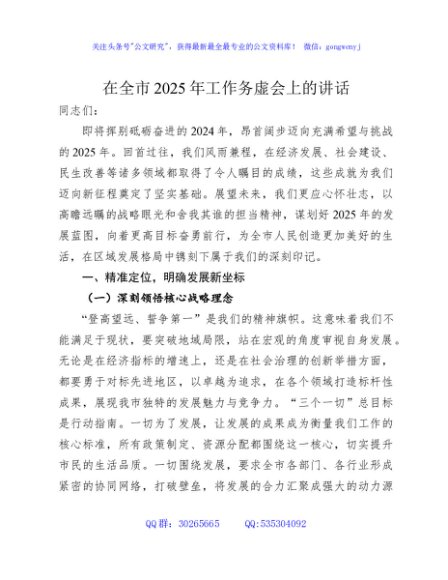 / 在全市 2025 年工作务虚会上的讲话