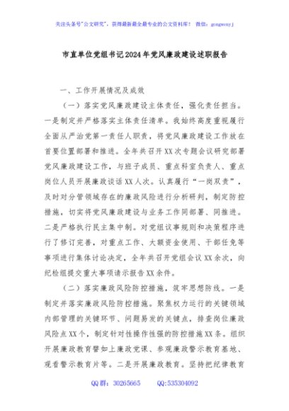 / 市直单位党组书记2024年党风廉政建设述职报告
