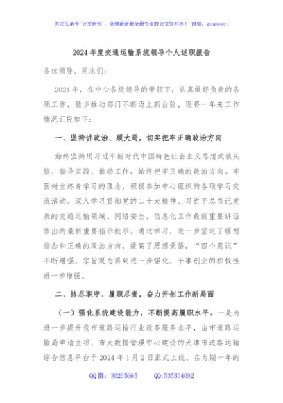 / 2024年度交通运输系统领导个人述职报告