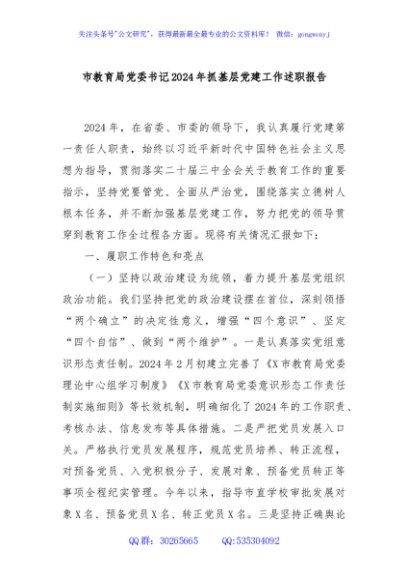 / 市教育局党委书记2024年抓基层党建工作述职报告