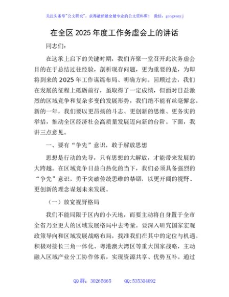 / 在全区 2025年度工作务虚会上的讲话