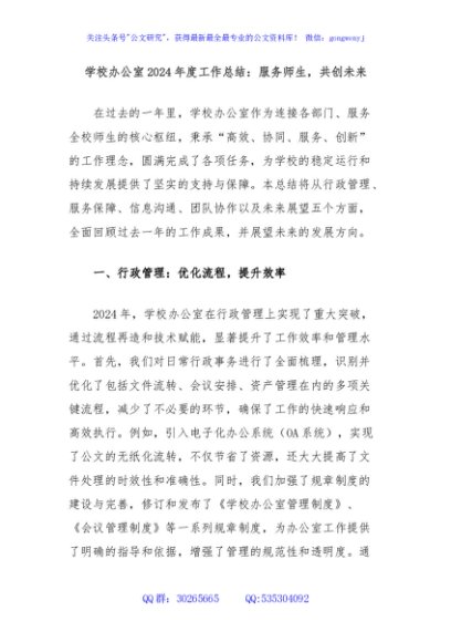 / 学校办公室2024年度工作总结:服务师生,共创未来