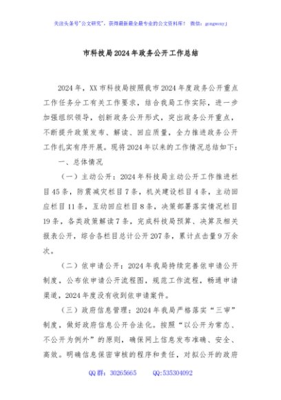 / 市科技局2024年政务公开工作总结