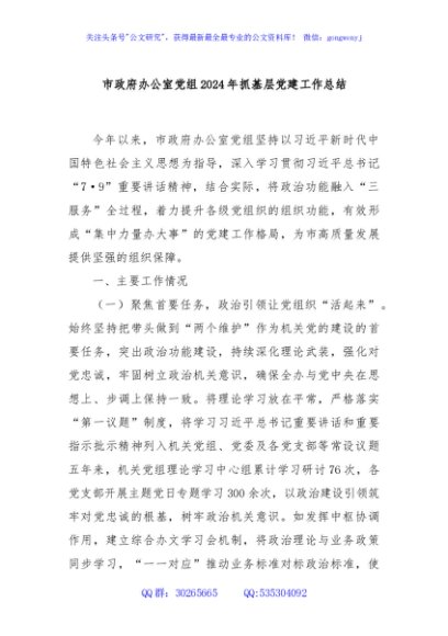 / 市政府办公室党组2024年抓基层党建工作总结