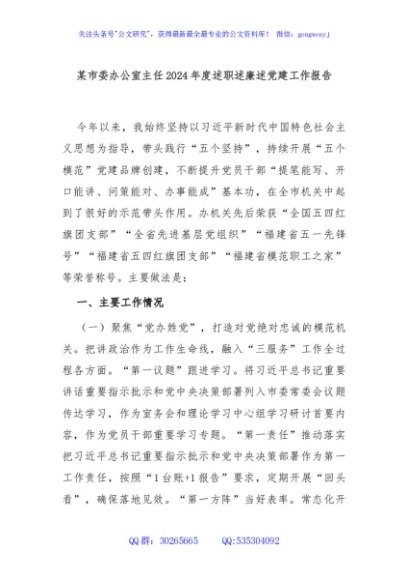 / 某市委办公室主任2024年度述职述廉述党建工作报告