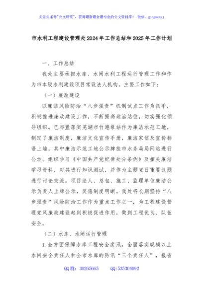 / 市水利工程建设管理处2024年工作总结和2025年工作计划