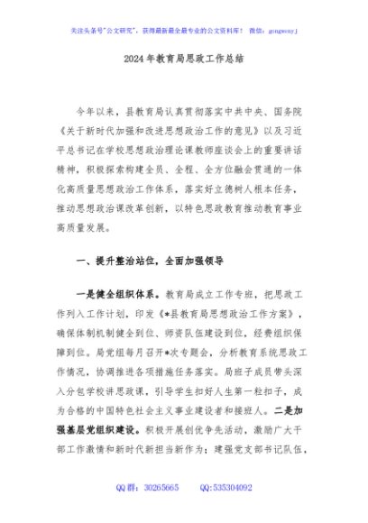 / 2024年教育局思政工作总结