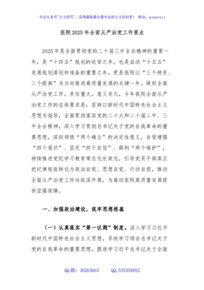/ 医院2025年全面从严治党工作要点