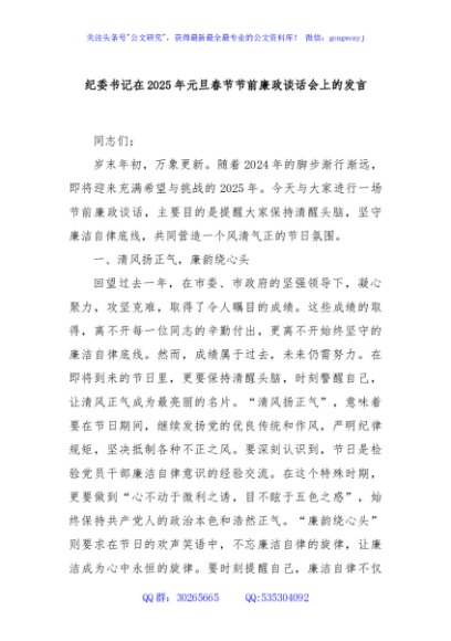 / 纪委书记在2025年元旦春节节前廉政谈话会上的发言