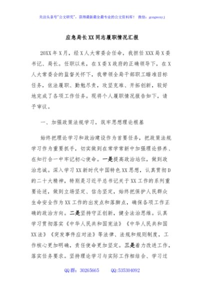 / 应急局长XX同志履职情况汇报