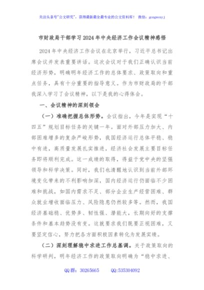 市财政局干部学习2024年中央经济工作会议精神感悟