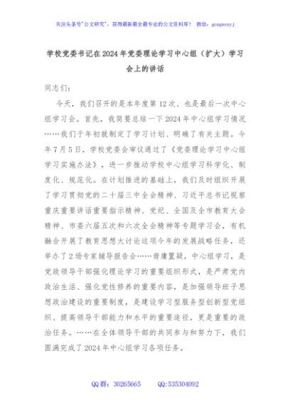 / 学校党委书记在2024年党委理论学习中心组(扩大)学习会上的讲话