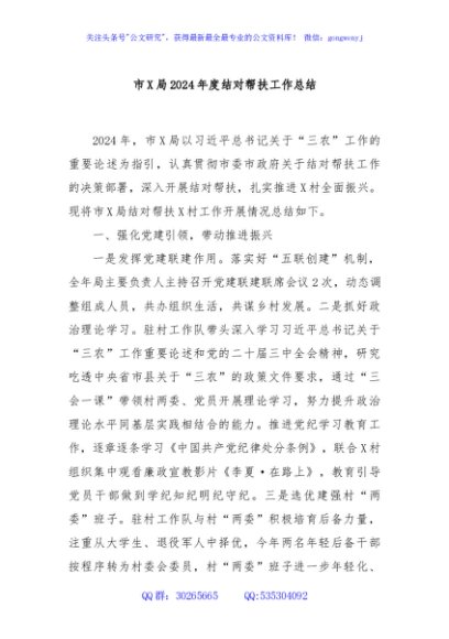 / 市X局2024年度结对帮扶工作总结