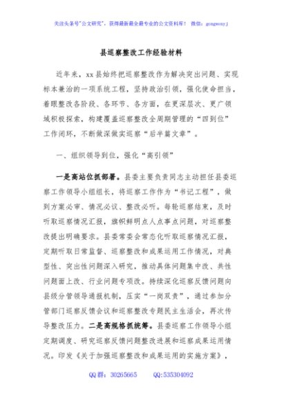 / 县巡察整改工作经验材料