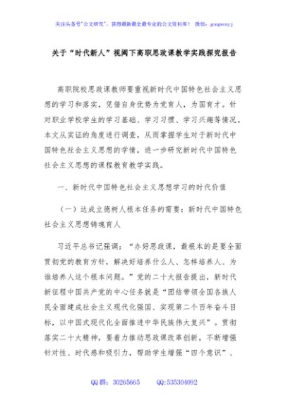 / 关于“时代新人”视阈下高职思政课教学实践探究报告