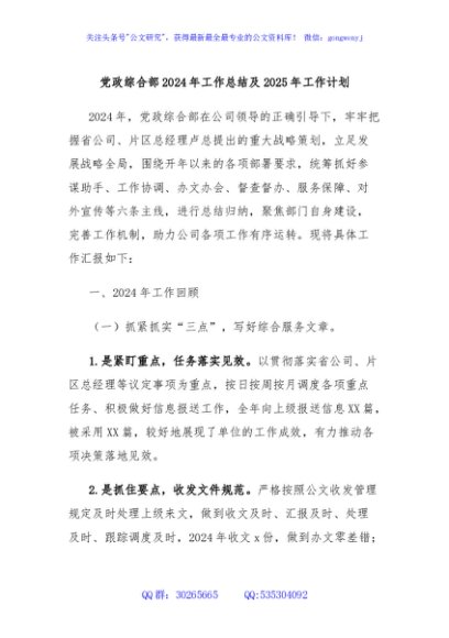 / 党政综合部2024年工作总结及2025年工作计划