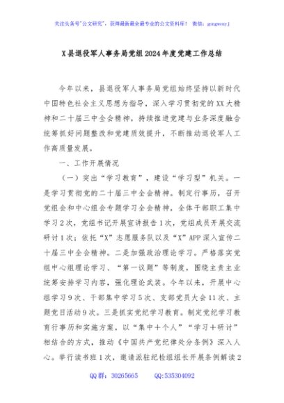 / X县退役军人事务局党组2024年度党建工作总结