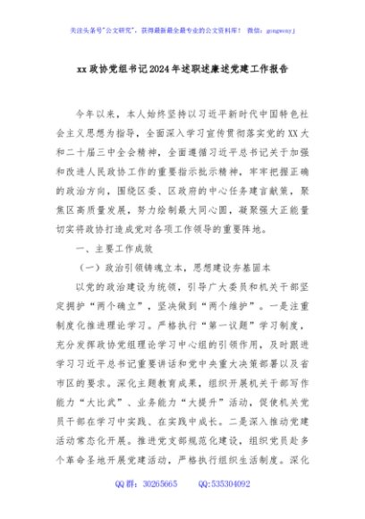 / xx政协党组书记2024年述职述廉述党建工作报告