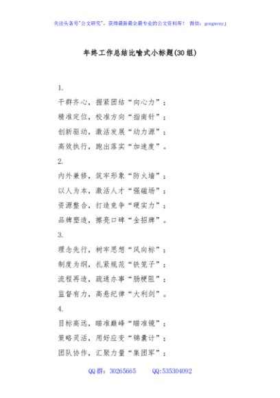 / (30组)年终工作总结比喻式小标题