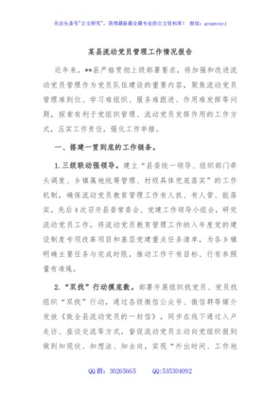 / 某县流动党员管理工作情况报告