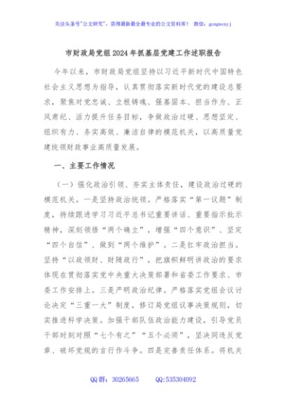 / 市财政局党组2024年抓基层党建工作述职报告