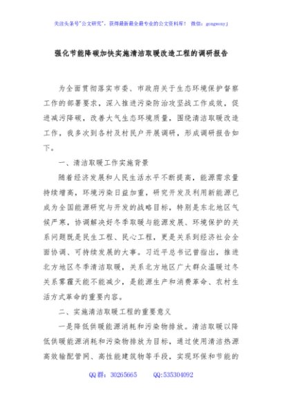 / 强化节能降碳加快实施清洁取暖改造工程的调研报告